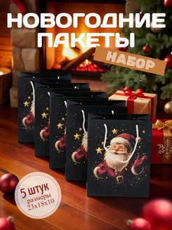 Подарочные пакеты новогодние с дедом морозом 5 шт 18*23*10см