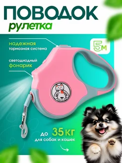 Поводок для собак мелких и средних пород рулетка 5 м с фонар…