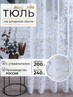Тюль в гостиную спальню под лен 200х250 на шторной ленте