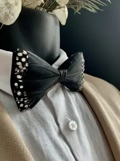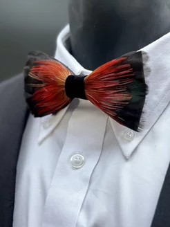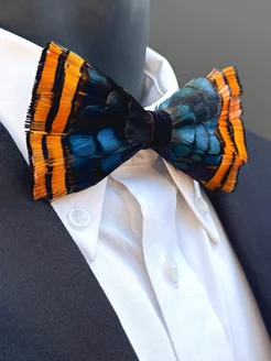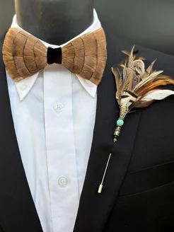 Коричневый галстук-бабочка и бутоньерка с перьями