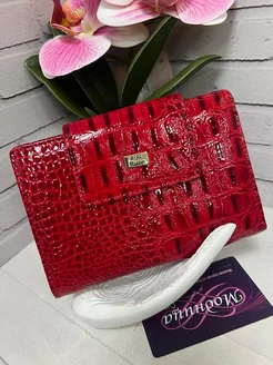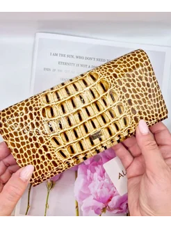 Кошелёк большой рептилия на кнопке кожаный под питон