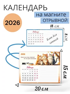 Календарь на магните с блоком 2026 Символ года Лошадь