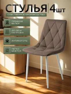 Cтулья для кухни со спинкой мягкие велюр 4 шт