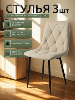 Cтулья для кухни со спинкой мягкие велюр 3шт