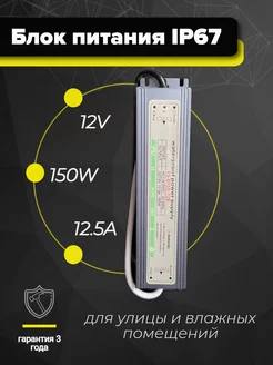 Блок питания IP 67 150W 12.5A 12V для светодиодных лент