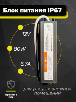 Блок питания IP 67 80W 6,7A 12V для светодиодных лент