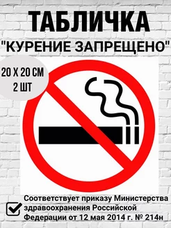 Табличка не курить Курение запрещено 200х200мм 2 шт