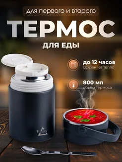 Термос для еды и супа с широким горлом металлический 0.8 л
