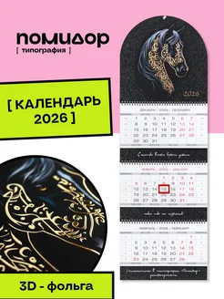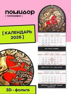 Календарь 2026 настенный квартальный Год лошади 3D Хохлома