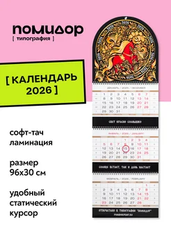 Календарь 2026 настенный квартальный Год лошади Хохлома