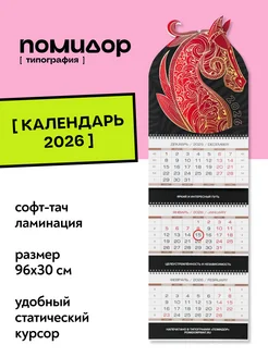 Календарь 2026 настенный квартальный 3D Год красной лошади