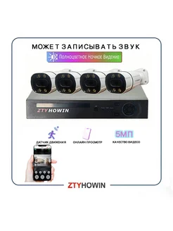 Видеонаблюдение комплект 4 уличная камера 5Mп
