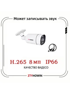 Камера видеонаблюдения на улицу 8MP, встроенный микрофон