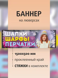 Вывеска Шапки шарфы перчатки 150х50см баннер на люверсах