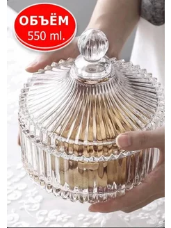Конфетница из толстого стекла с крышкой, ваза для печенья