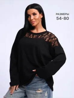 Лонгслив оверсайз больших размеров с длинным рукавом