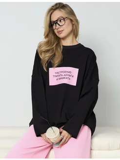 Лонгслив оверсайз черный с принтом