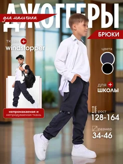 Брюки джоггеры на резинке школьные синие виндстоппер
