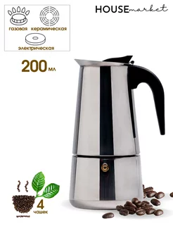 Гейзерная кофеварка из нержавеющей стали на 4 порции 200 мл
