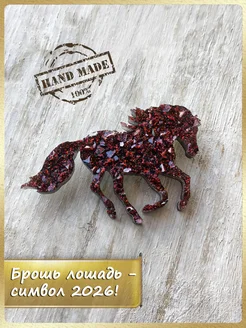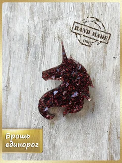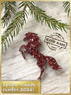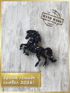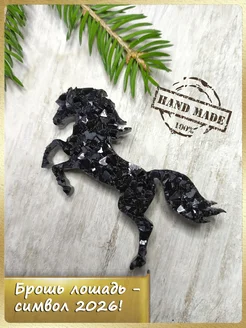 Брошь лошадь на дыбах черная из эпоксидной смолы