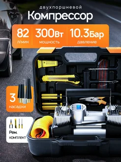 Компрессор автомобильный двухпоршневой 82л мин от клемм акб
