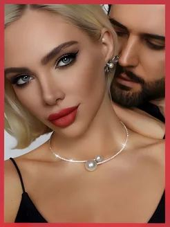 Колье со стразами жемчуг