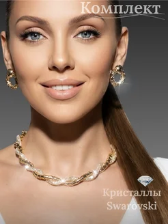 Крупное колье и серьги с кристаллами Swarovski