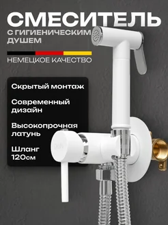 Смеситель с гигиеническим душем встраиваемый белый