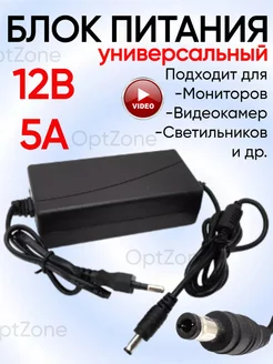 Блок питания 12В 5А для видеонаблюдения и монитора