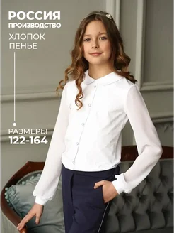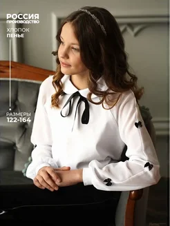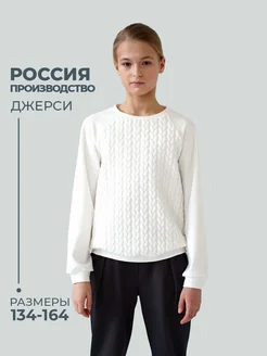 Джемпер для девoчки с кружевом школьный белый хлопковый