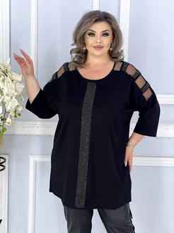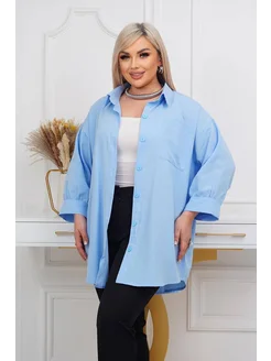 Рубашка летняя больших размеров удлиненная нарядная стразы