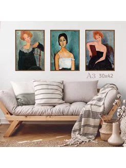 Набор №2 из 3 репродукций картин Амедео Модильяни 30х42