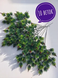 Хвойные ветки ели с шишками для новогоднего декора 10 шт
