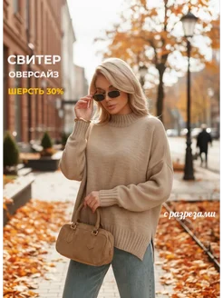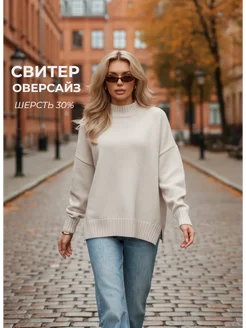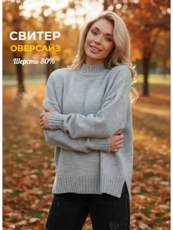 Свитер оверсайз вязаный теплый шерсть 30%