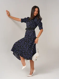 Платье вечернее миди с воротником