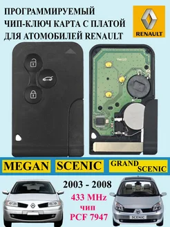 Смарт чип ключ карта Renault трехкнопочная для меган, сценик