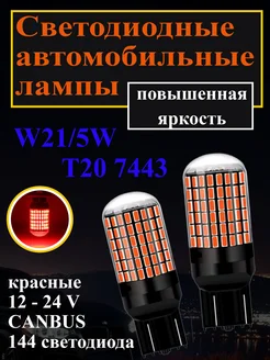 Светодиодные лампы Т20 W21 5W 7443 для заднего хода 12-24В
