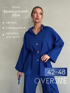 Костюм летний льняной с брюками палаццо и рубашкой