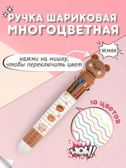 Ручка шариковая многоцветная 10 цветов Мишка teddy bear