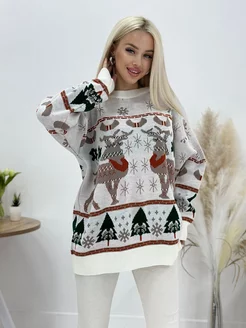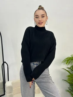 Свитер женский оверсайз с горлом вязаный теплый стильный