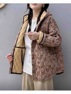 Куртка фуфайка с капюшоном утепленная из хлопка
