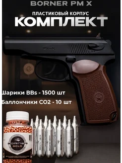 Пневматический пистолет BORNER PM-X, 10 баллонов, 1500 пуль
