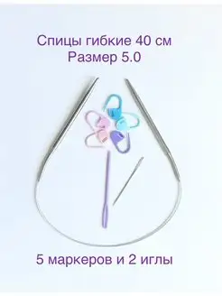 Спицы для вязания круговые 40см на тросике 5.0 мм