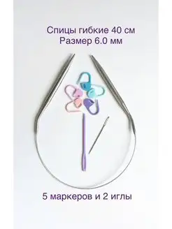 Спицы для вязания круговые 40см на тросике 6.0 мм