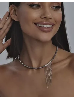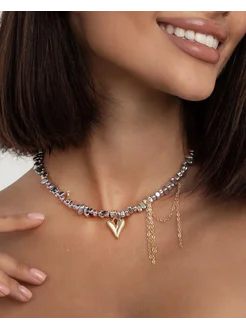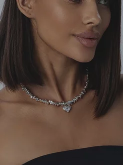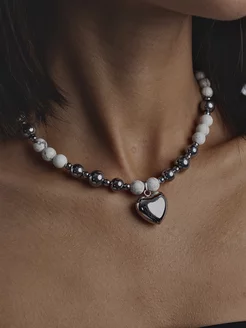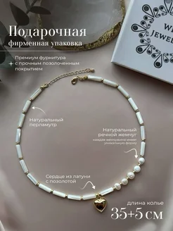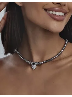 Чокер колье из белого перламутра и жемчуга с кулоном сердце