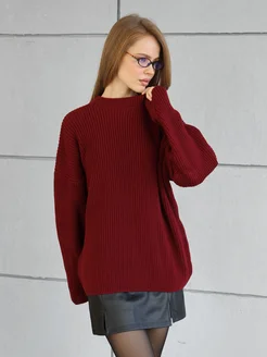 Свитер бордовый оверсайз удлиненный крупная вязка в рубчик
