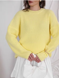 Свитер желтый оверсайз удлиненный крупная вязка в рубчик