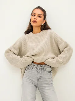 Свитер оверсайз удлиненный крупная вязка в рубчик