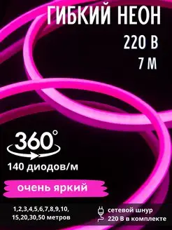 Гибкий неон круглый D - 14мм, 7м, 220В, 140 LED м