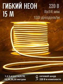 Гибкий неон 15 метров, 8х16 мм, 220В, 120 LED м